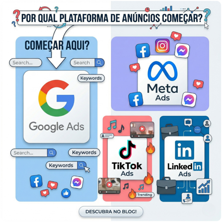 Google, Meta, TikTok ou LinkedIn? Descubra qual plataforma de anúncios é a ideal para o seu momento atual, os prós e contras de cada uma e por onde começar a investir para ter retorno real.